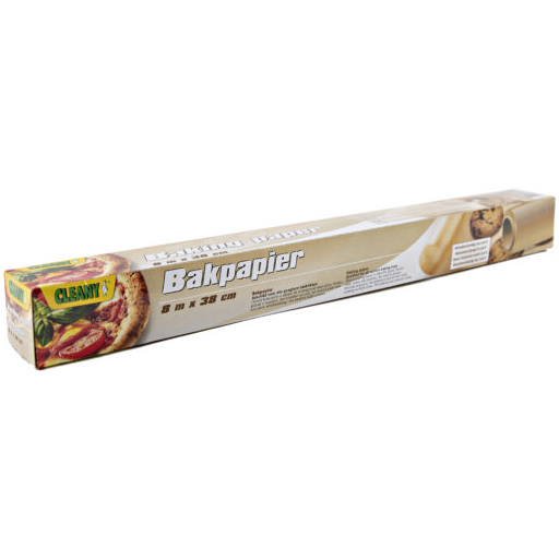 Cleany bakpapier. Geschikt voor alle gangbare bakblikken. Cleany bakpapier is ideaal als ondergrond voor pizza, frietjes, gebak of koekjes. Het invetten vervalt, het baksel plakt niet vast door antikleeflaag. Het bakblik blijft schoon. 8m x 38cm.