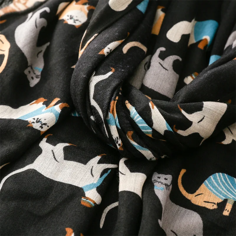 Heerlijk grote, zachte en warme sjaal met katten print allover in zwart.