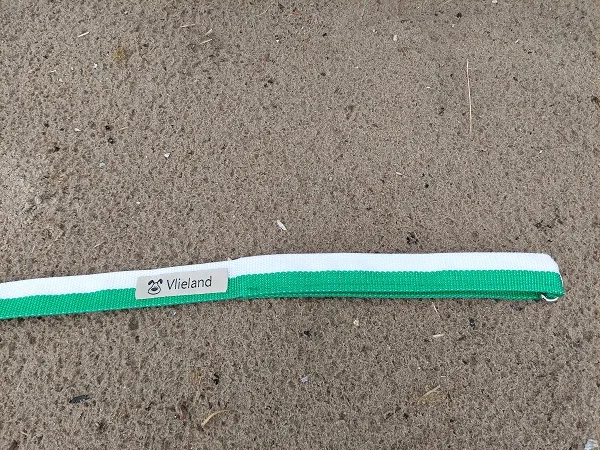 De Vlieland hondenriem, met de kleuren van de Vlielandse vlag is een unieke riem. De riem wordt handmatig gemaakt op het Waddeneiland Vlieland. De riem kan qua lengte in 4 verschillende varianties gebruikt worden. De riem is gemaakt van canvas en is 2,5cm breed en 180 meter lang.